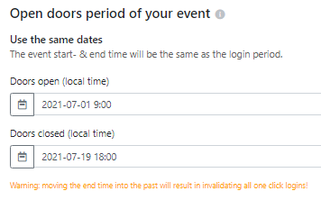 2: Close date is in the future and you change it to a moment in the past => your users will no longer be able to access the event with the existing one click login link. The one click login link becomes invalid and can never be used again.